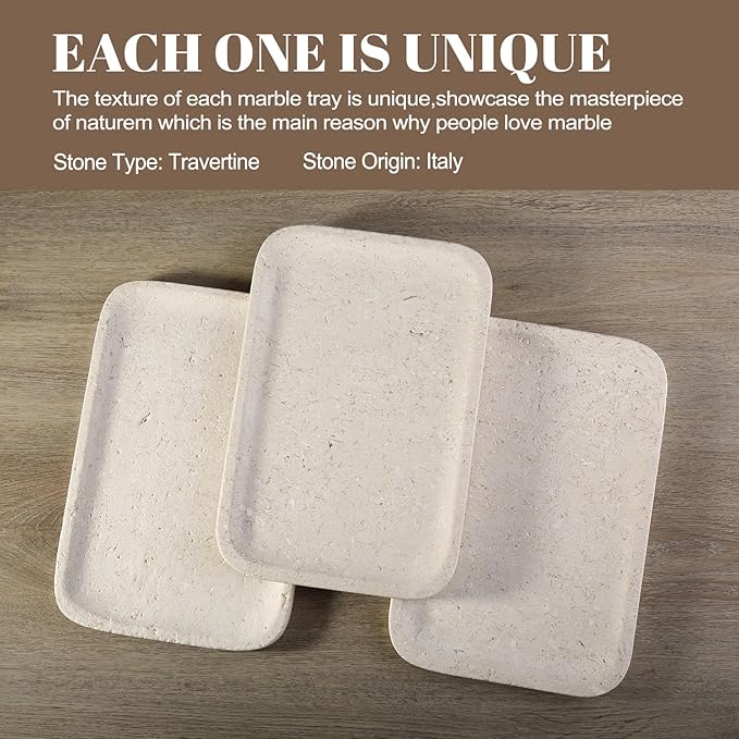 - 【Multi Purpose】This organizer tray can be used as a jewelry tray, perfume tray, cosmetic tray, key watch tray, or even a coffee tray. Whether kitchen, bedroom or living room counter, table or nightstand, this stone vanity tray fits in perfectly. The slightly raised edges of the stone tray can prevent items from falling