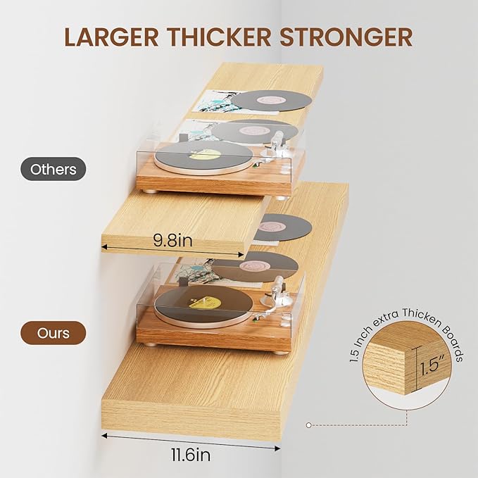 - Extra Deep Floating Shelves: Measuring 11.6” D x 47.2” W x 1.5” H, these shelves are crafted for maximum depth and durability. The spacious 12” depth gives you plenty of room for stylish display, organized storage, and decorative accents. Perfectly suited for your bathroom, kitchen, or living room, they enhance both function and flair in any space!