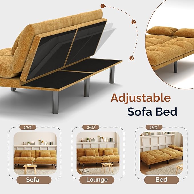 - 2. Durability and Stylish Futon safe bed: Our futon sofa couch is crafted from premium chenille fabric, which is comfortable and easy to clean, so there is no need to worry even if you have pets at home. It is a very easy-to-manage futon safe bed.