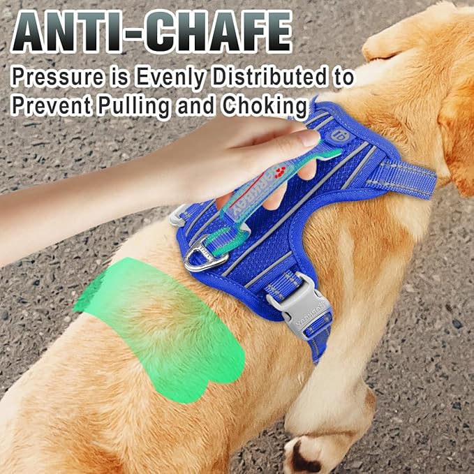 BARKBAY No Pull Dog Harness Large Reflective Dog Harness with Front Clip and Easy Control Handle for Walking Training Running with ID tag Pocket(Sapphire Blue,M)