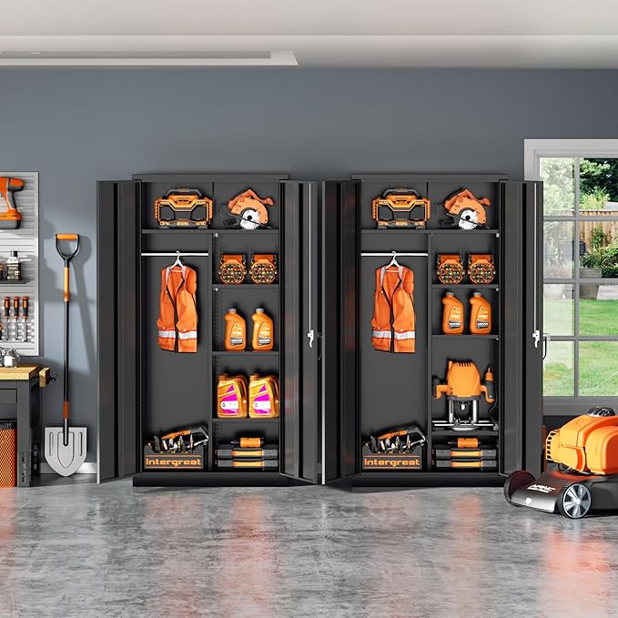 - 【Assemble Fast】: INTERGREAT storage cabinet with 2 locking wing doors can be assembled step by step according to the instruction in the box. There are 4 Pre-holes on the back of the steel cabinet, you can fix it to the wall with our screws, and make janitorial cabinet more stable.