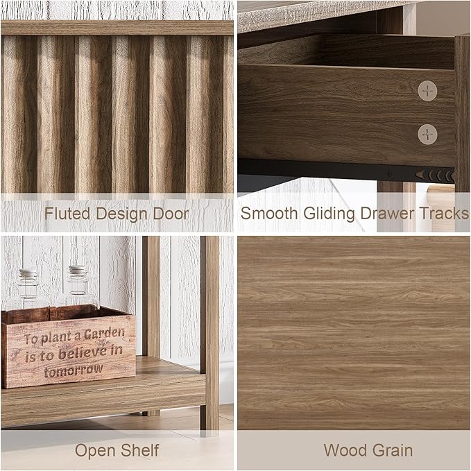- 【Stylish Fluted Design】Farmhouse console tables with 3 drawers feature fluted detailing combined with a handleless design, creating a sleek, minimalist look. Paired with the warm woodgrain finish, the entry table delivers an aesthetic that blends effortlessly with farmhouse interiors