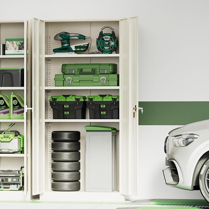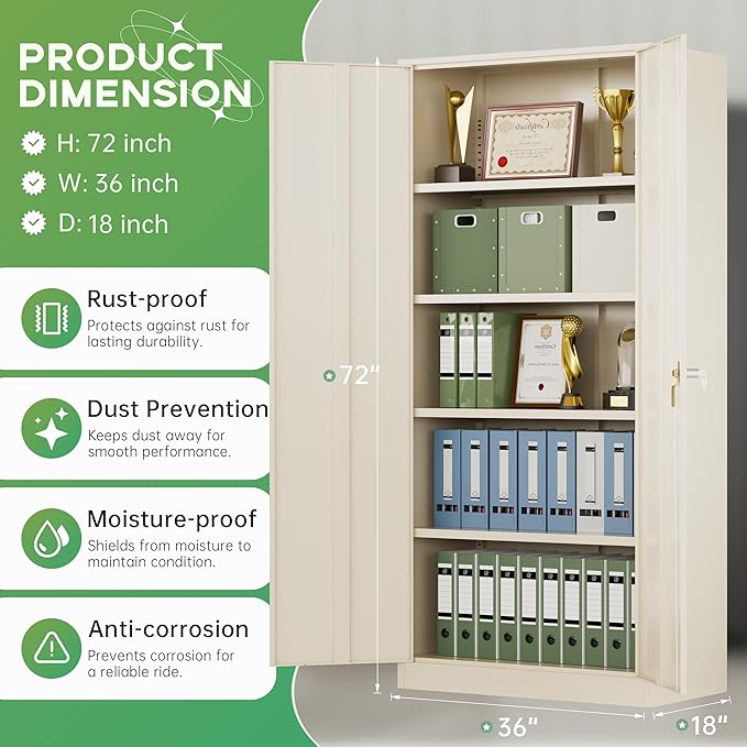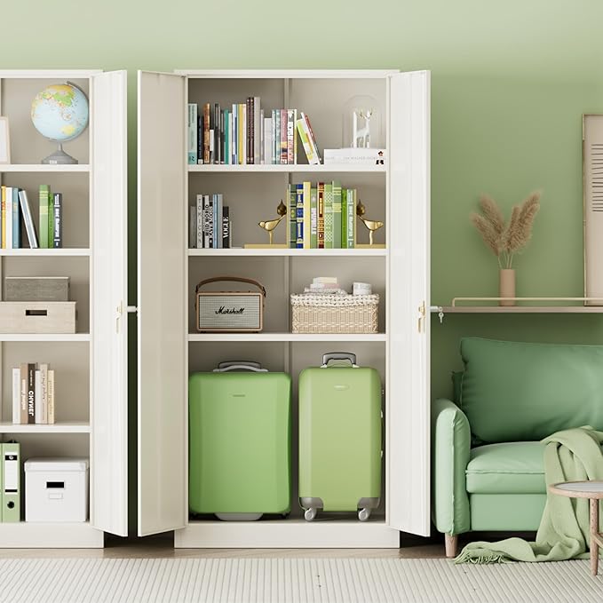 - 【Pratical design】Our tall metal cabinet equipped with 4 adjustable shelves to provide adaptability and convenience.Regardless of what your storage needs are, you have the ability to create a unique storage space to suit them.