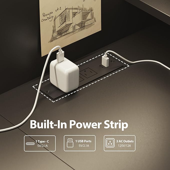- 【Ambient Light & Power Strip】Built-in soft LED light enhances desk atmosphere. Integrated power strip offers convenient device charging.