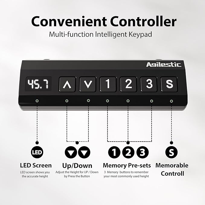 - 【Electric Height Adjustment】Adjusts from 27.8"–45.9" with quiet motor (<55 dB) and two memory presets for effortless sit-stand transitions.
