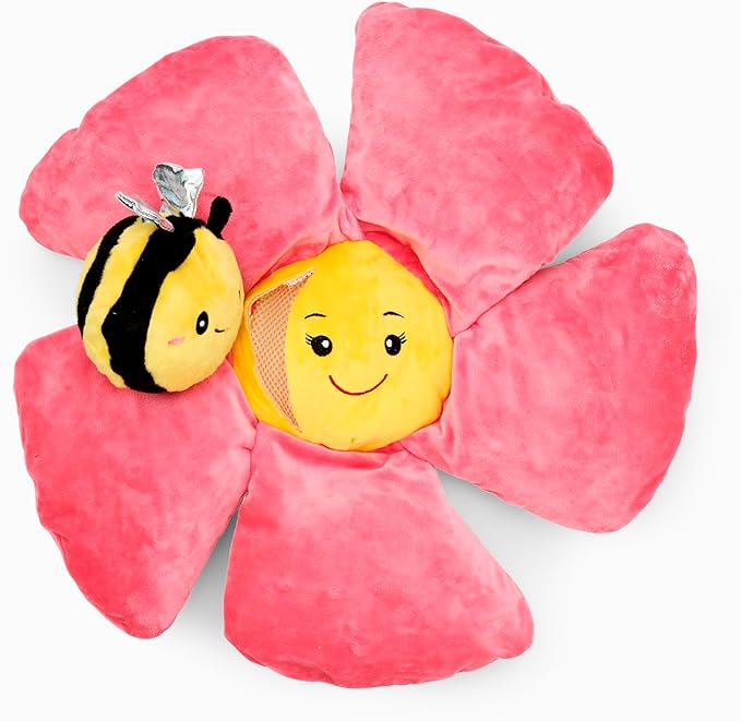 Flourish Pets 3 in 1 Multi-Layer Chew Toy for Active Dogs | Non-Toxic BPA Free Double Stitched Soft Fabric Exterior Dog Toys | Long-Lasting Dog Plush Toys - Small Pink Poppy 13"