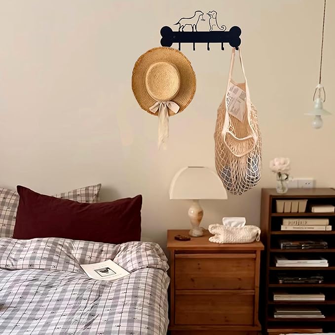 - Dog leash organizer: This wall-mounted dog chain hook has 6 hooks, which can conveniently store dog chains, harnesses, collars and other pet accessories.