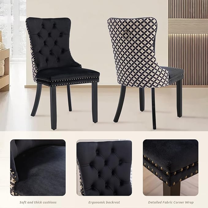 - 【Dining Chair Material】The accent dining chair is upholstered in classic velvet for comfort and elegance. The frame and legs of the chair are made of solid wood, which provides enough safety to hold up to 250 lbs. The seat cushion has a bi-elastic structure with high-rebound foam to provide you with a comfortable seating experience. There are small anti-scratch feet on the bottom of each leg to prevent damage to the floor.