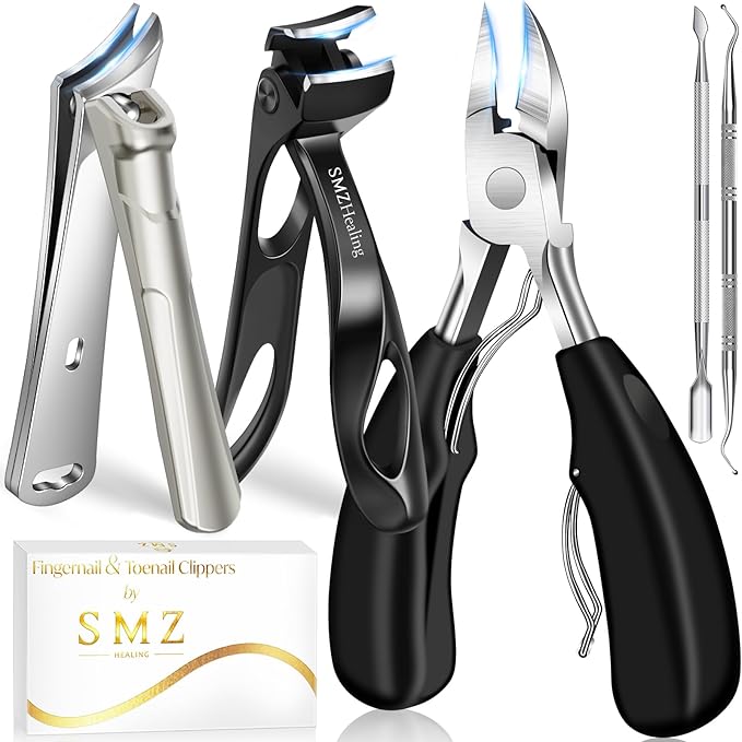 - HEAVY DUTY TOENAIL CLIPPER SET - 5-IN-1 nail clipper set contains 1 x Large Wide Jaw Opening Toenail Clippers, 1 x Angled Head Nail Clippers, 1 x Slanted Nail Clippers, 1 x Ingrown Nail Lifter, 1 x Cuticle Pusher, packed in a beautiful box. Nail clippers for men are ideal for trimming thick nails, ingrown nails, big toenails, side nails and cuticles, great for seniors, men and women and adult