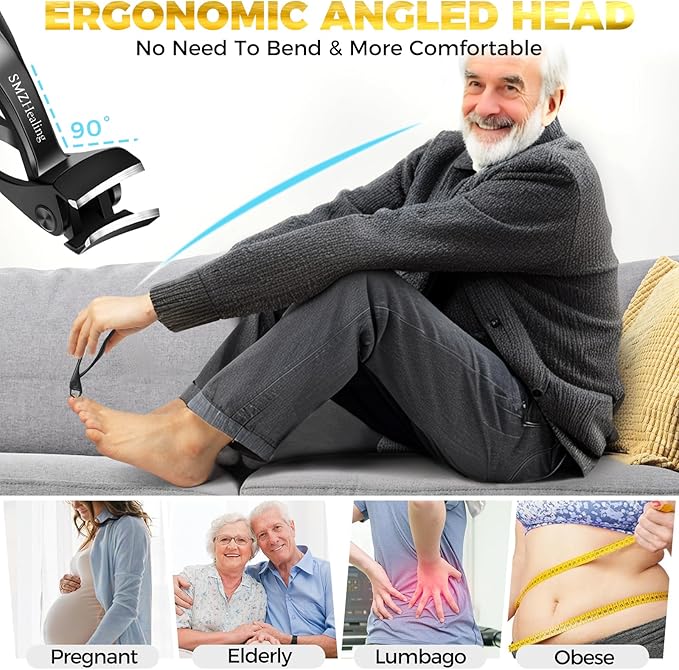 - UPGRADED 15 DEGREE ANGLED TOENAIL CLIPPERS - SMZHealing Toenail clippers for seniors Upgraded 15° blade, no longer worry about the traditional blade blocking the line of sight. Ergonomically designed with a bionic 7-shaped angled head, you can see the blade and nails clearly so you can cut your nails accurately and confidently. With this angled nail clipper, no more twisting and bending your body to cut your toenails, great for the elderly, men, women, adults, etc