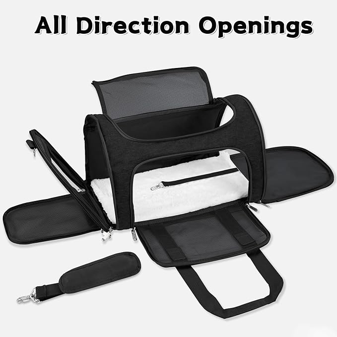 Soft-Sided Cat/Dog/Pet Carrier, Collapsible Pets Travel Carriers for Big Cats/Small Dogs with Shoulder Strap & Removable Mat, Mesh Puppy Carry Bag, Up to 25 Lbs(Black)