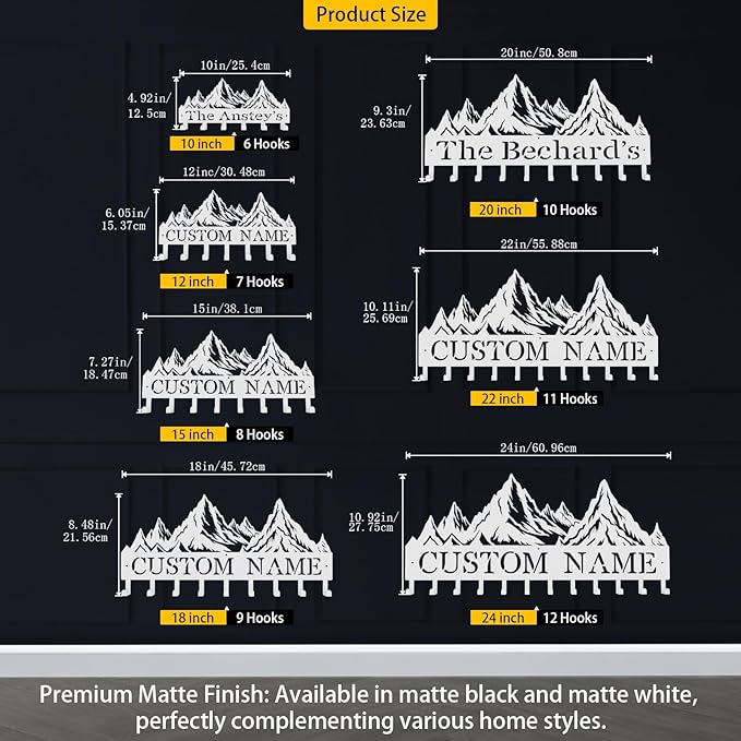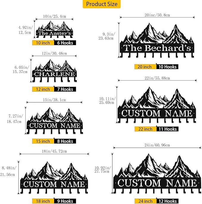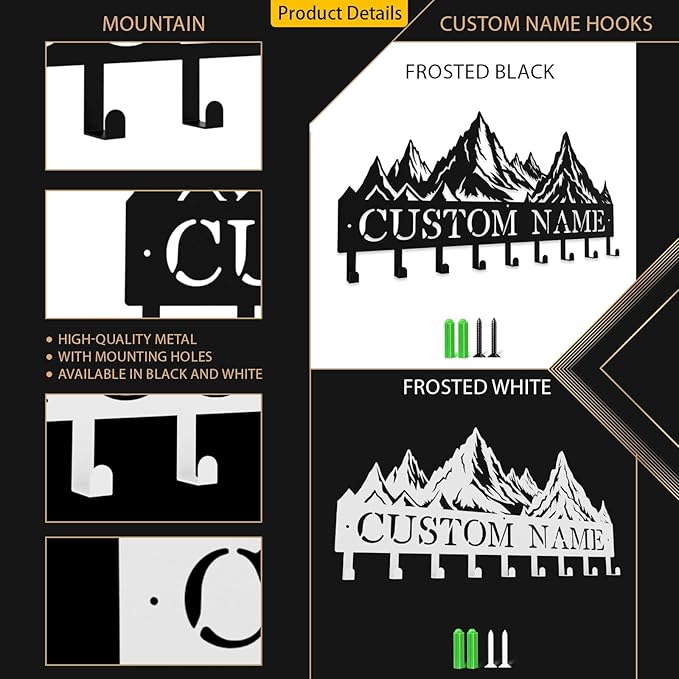 Custom Metal Key Rack Hooks, Personalized Key Holder for Wall, Mountain Theme Wall Decoration, Key Hanger Organizer for Living Room, Entryway, Offices, Kitchen Decor
