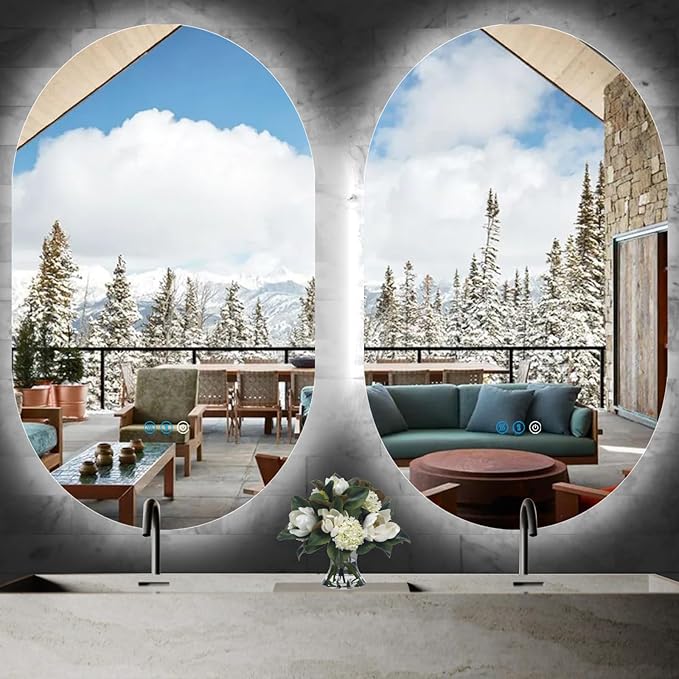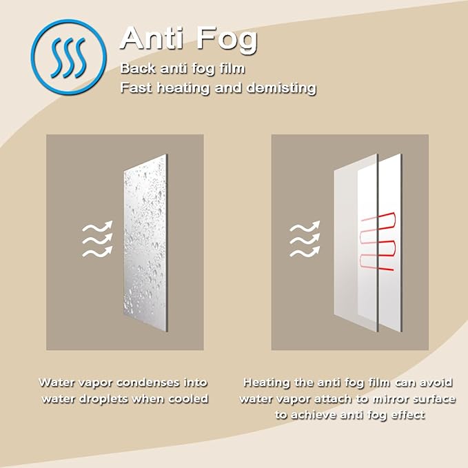 - đ„°[Smart Anti-fog Function] Say goodbye to the foggy mirror after a hot shower! This LED Bathroom Mirror upgrades a larger anti-fog area. After turning on the anti-fog function for 3 minutes, the built-in heating coil will disperse the fog evenly from the center to the edge, keeping the LED Bathroom Vanity Mirror clear. After the defog function is turned on, it will automatically turn off in 30 minutes, saving energy for you.