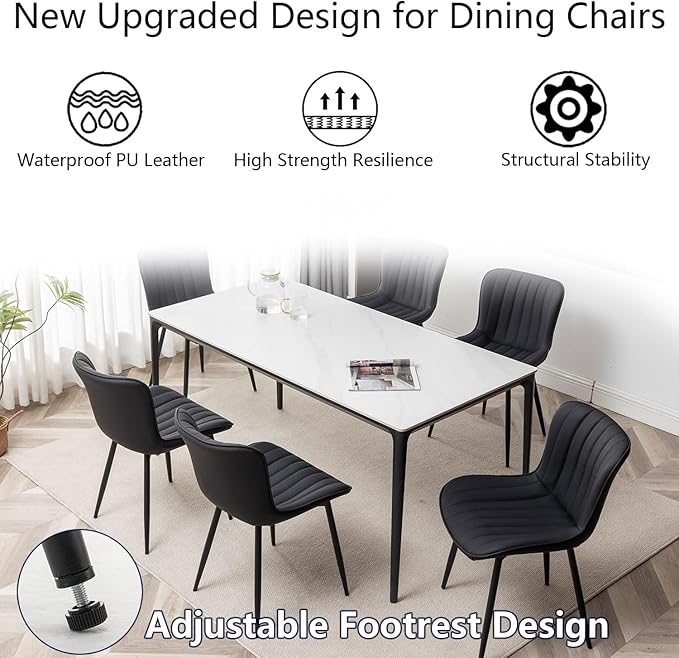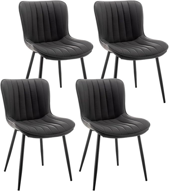 Leather Dining Chairs Set of 4, Upholstered Dining Room Chairs with Metal Legs, Modern Dining Chair for Dining Room, Kitchen (Black)