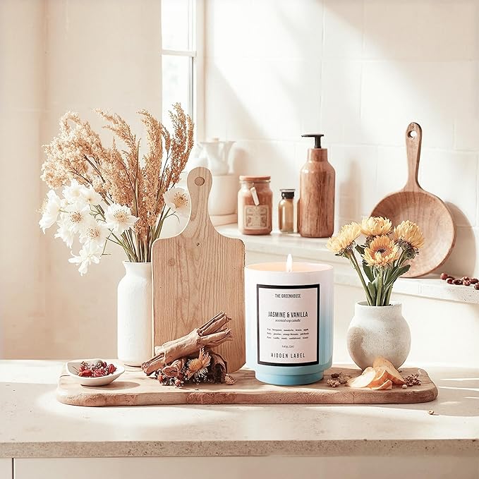 - Soothing Jasmine Vanilla Scented Candles for Home A harmonious blend of exotic jasmine and sweet vanilla creates an ambiance that is both calming and uplifting. This natural soy wax candle fills your living room, bedroom, or meditation space with a soft, inviting fragrance—perfect for daily relaxation or creating a welcoming environment for guests.