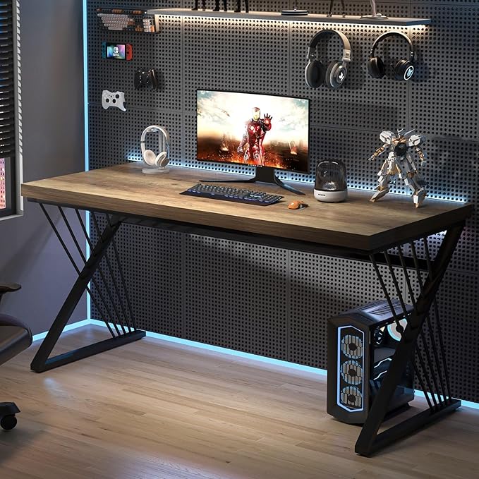 - Spacious and Functional Design: The large 60” W x 23.6” D surface provides room for a monitor, laptop, keyboard, and accessories. Use it as a gaming desk, writing desk, or work table. Its open design offers enough space for comfortable working or studying
