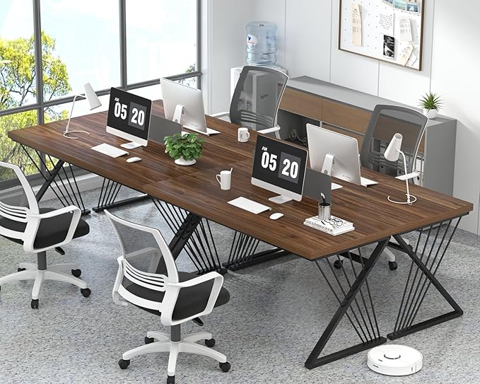 - Stylish Walnut Desk: This office desk features a rustic walnut wood grain surface and black powder-coated metal frame, blending minimalist styles. The Z-shaped frame adds a stylish touch, making it suitable for home offices, bedrooms, and living rooms