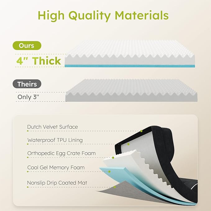 - Orthopedic Support:CWAWZ's xlarge dog bed is filled with a 4" thick layer of high density orthopedic foam to cushion dog's joints and provide optimal support as they sleep, especially suitable for older dogs with anxiety and large dogs with arthritis