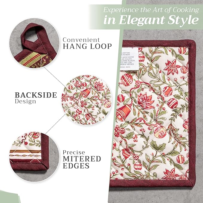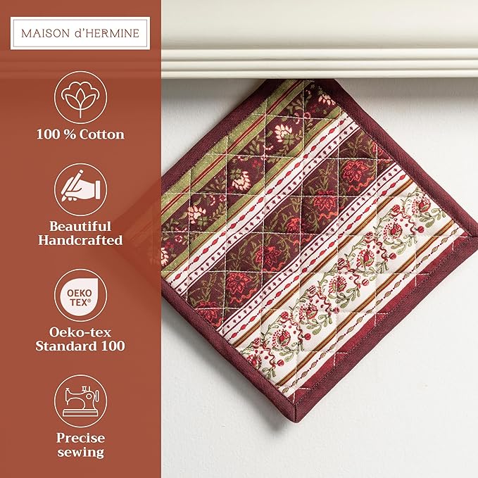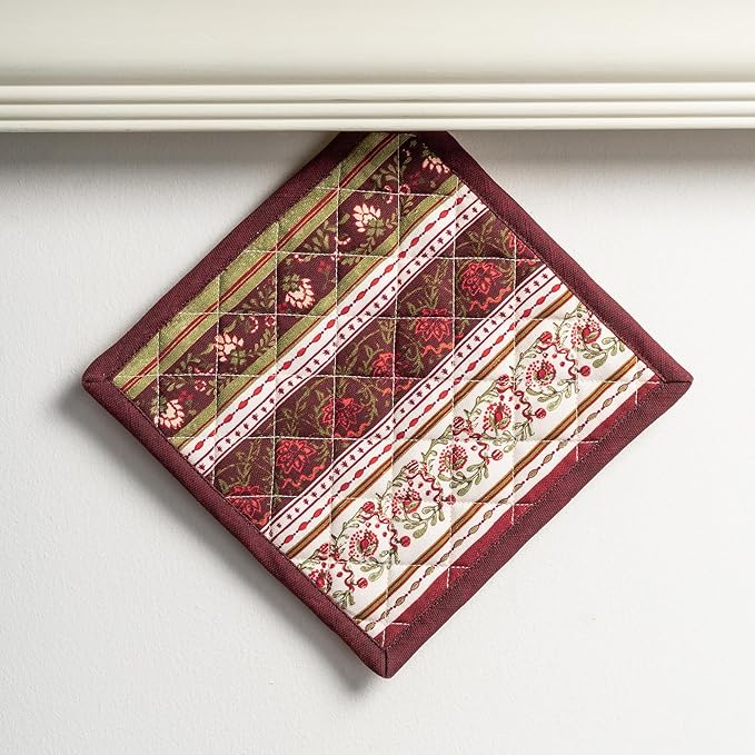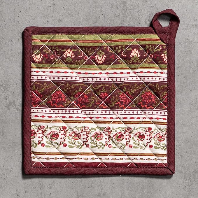 - Premium Quality: Crafted from quilted 100% cotton, this heat-resistant pot holder protects your hands from hot cookware. It features a built-in hanging loop for easy storage and quick access. Perfect for everyday home kitchens, farmhouse kitchens, hotels, restaurants, and bakeries