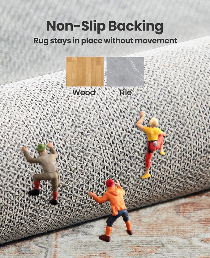 - Non-Slip Backing: Living room rug features a non-slip backing to keep it securely in place, even on smooth surfaces like tile or wood. With a rug that stays flat without shifting or moving, you can enjoy a stable flooring surface and peace of mind, perfect for busy families with kids or pets.