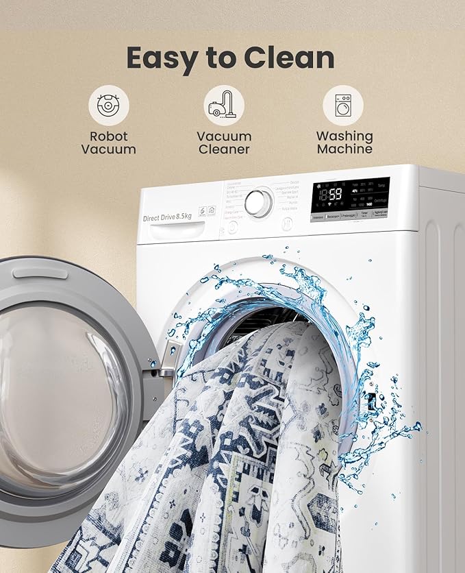 - Machine Washable: The short pile design of this washable rug is easy to maintain using an upright vacuum or robotic vacuum cleaner. The area rug is also machine-washable for fast and hassle-free cleaning. After washing, a low-temperature iron can help to keep the living room carpet’s surface flat and smooth.