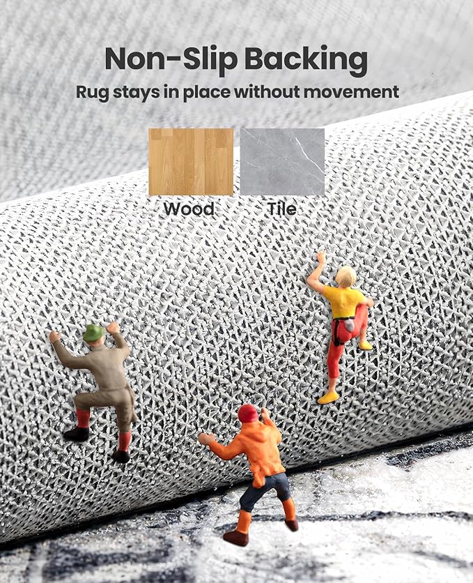 - Non-Slip Backing: Living room rug features a non-slip backing to keep it securely in place, even on smooth surfaces like tile or wood. With a rug that stays flat without shifting or moving, you can enjoy a stable flooring surface and peace of mind, perfect for busy families with kids or pets.