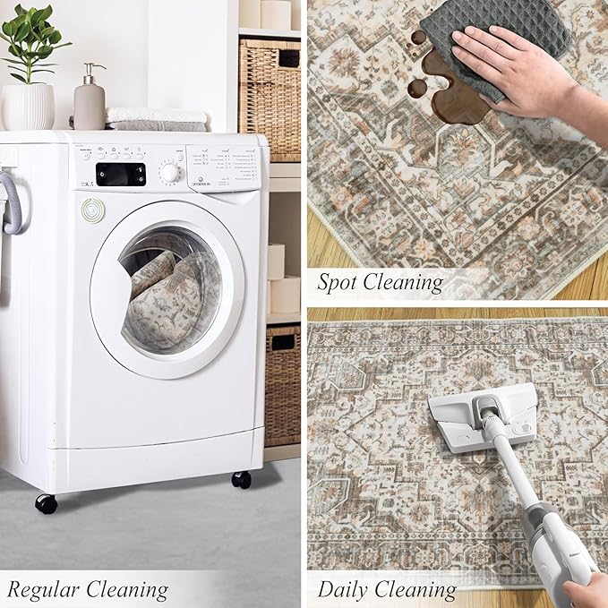 - ❤️[Machine Washable] - The vintage rug can be machine washed, vacuumed, broom or rag cleaned. Rug fold wrappers may temporarily wrinkle, it is recommended to roll the rug in the opposite direction to give the creases time to flatten and set