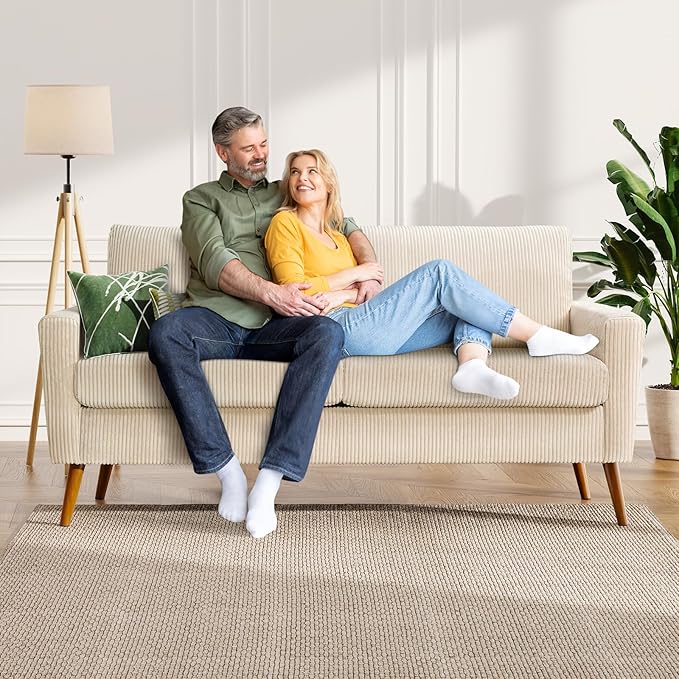 WEUP 68" Loveseat Sofa Beige Corduroy Couch, Mid Century Modern Love Seat Couches for Living Room, Small Loveseat for Bedroom Office, Comfy Sofa with Spring Cushion, Solid Wood, Tool-Free Assembly
