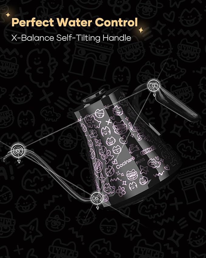 - Art Meets Coffee Ritual Precision: Co-designed with Parisian street artist Chanoir, this limited-edition gooseneck electric kettle turns every pour into a work of art. The bold graffiti-inspired design combines creativity with barista-level performance.