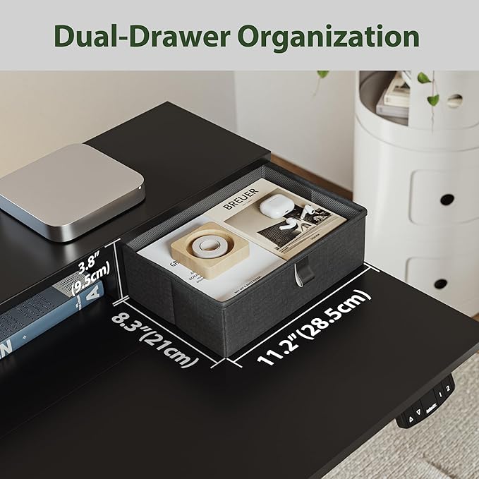 - 【Adjustable Height for Sit and Stand Flexibility】 Effortlessly switch between sitting and standing with the electric height adjustment feature. The desk height can be adjusted from 27'' to 45'', allowing you to find the perfect position for your work and health needs. The quiet motor operates below 55 dB, ensuring a peaceful work environment.