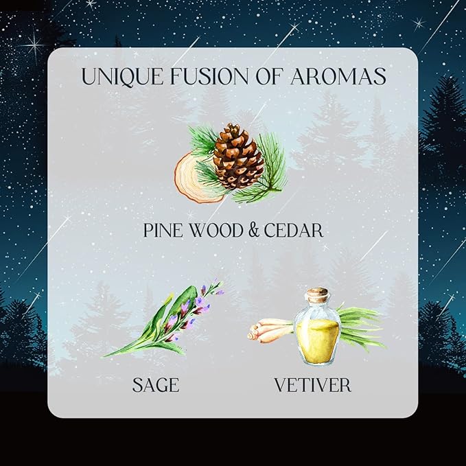 - 【Perfect Fragrance Blend】The rich, woody essence of pinewood and cedar combines with the herbal freshness of sage and the deep, earthy notes of vetiver. This unique blend creates a grounding and refreshing ambiance, bringing the calming energy of nature into your home.