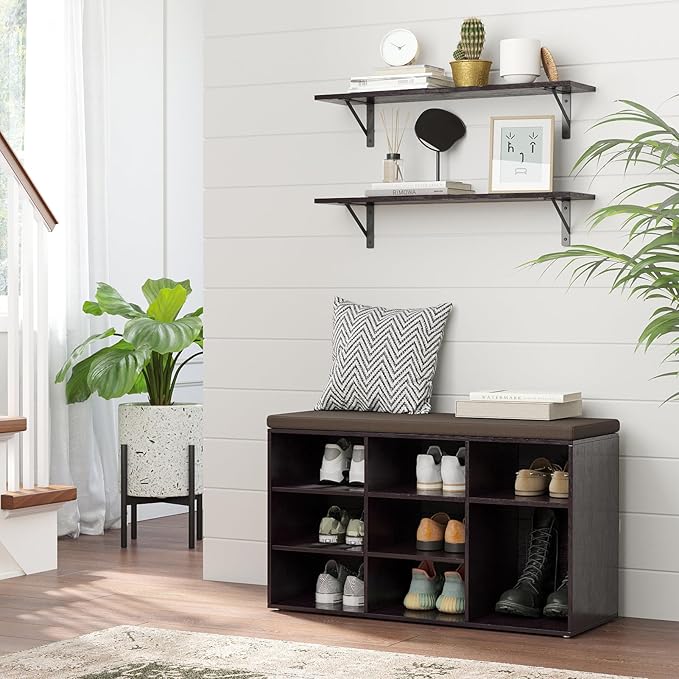 - 【Sturdy & Durable】Made of sturdy particleboard and metal brackets for safe and durable uses. The metal support shelves of DINZI LVJ are thicker than others for added stability and stronger load-bearing capacity(up to 22lbs), supporting the wooden shelves without sagging over time. All edges are well-finished for safety and smoothness