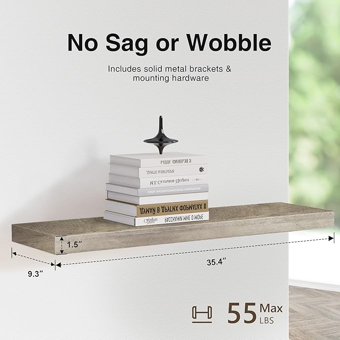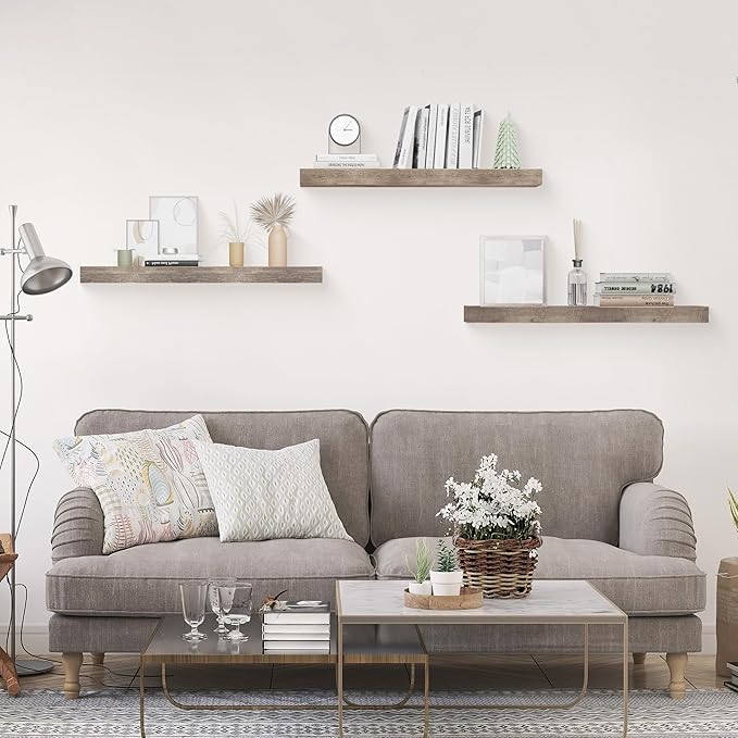 - VERSATILE AND STYLISH DESIGN: Elevate your space with our wall shelves, available in wood, black, white, and gray. These floating shelves come in two sizes (24 inches and 36 inches) and feature a natural wood texture that blends seamlessly with any decor style.