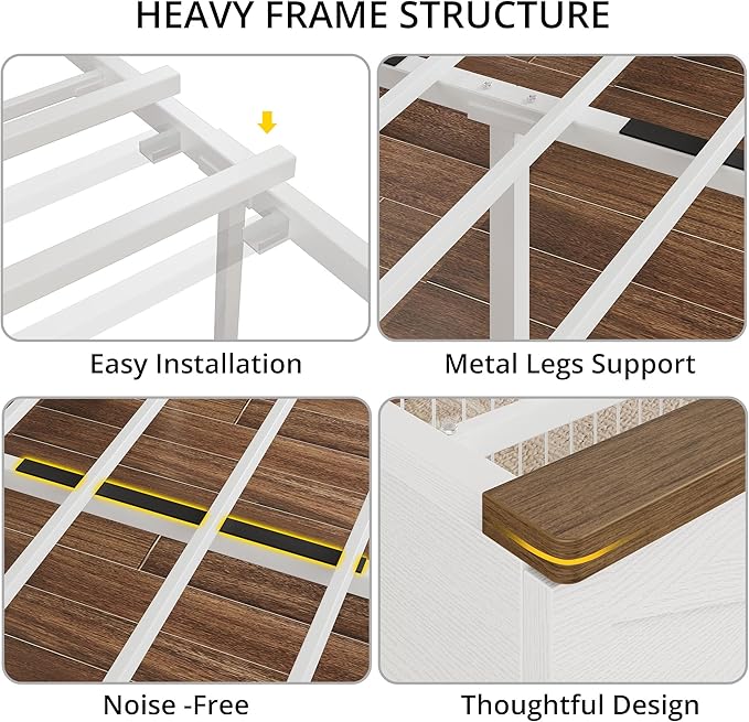 - Heavy Duty and Sturdy Structure: This rustic-style bed frame adopts a center support bar and 12 heavy-duty metal bed boards to enhance stability and durability, with a load capacity of up to 1000 pounds, and no box spring is required, Frame made of FSC-Certified wood