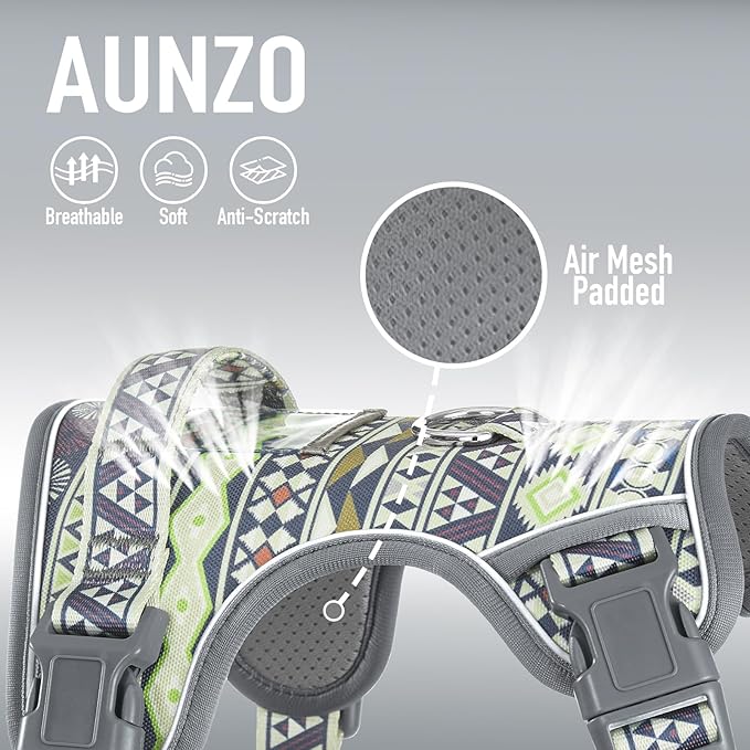 No Pull Dog Harness with 2 Metal D-Rings, Easy on/Off Dog Vest with Neck Buckle, No Need Over Head, Easy Walk Escapeproof No Choke Reflective Breathable, Harness for Large Dogs