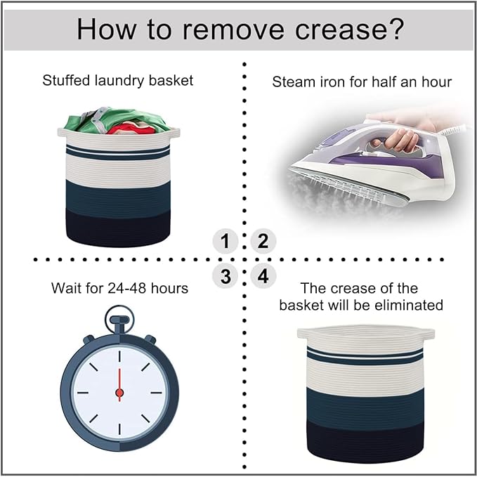 - Washable Large Basket: This large basket can be washed by hand or machine with gentle detergent. If machine washed, please put them into a laundry bag. NOTE: These cotton rope baskets are folded when shipping, but it will turn back to its elegant shape quickly if you fill it with some towels or clothing, and iron is great idea to remove the creases
