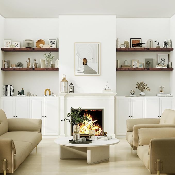 - Modern & Simplistic:The rustic wood design looks sleek and modern, complementing home decor perfectly. Our Floating Shelves for Wall Provides unique shelving solutions to any style home, studio apartment, Fireplace Mantel Shelves, wall decor for bedroom, wall decor living room, bathroom decor sets, or bathroom wall decor.It highly recommend these shelves for anyone looking to add both style and functionality to their space!