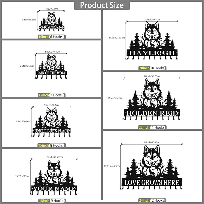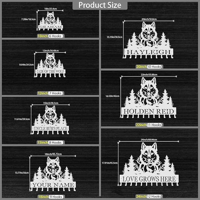 Personalized Key Hooks for Wall,Custom Name Mighty Wolf Key Holder Wall Mounted,Fashion Coat Rack,Metal Key Hanger with Hooks,Key Rack Organizer for Entryway,Hallway,Doorway