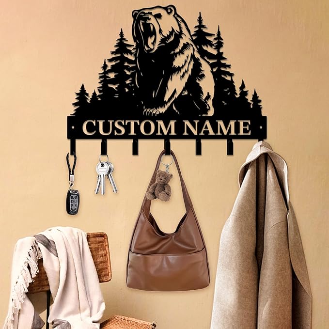 - Bear Key Wall Hooks Metal Signs - Durable & Versatile: Made from high-quality iron, these sturdy hooks combine functionality and rustic charm. Perfect for towels, clothes, or keys in your living room, office, or entryway.