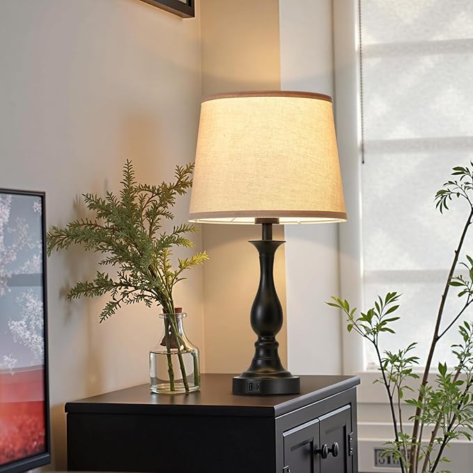 - 【High Grade & Elegant】Our bedside table lamp is made of a sturdy brushed nickel metal base and high-quality linen lampshade, which is retro, elegant, perfectly matching with retro and modern home decor, making it the ideal lighting desk lamp for villa and farmhouse