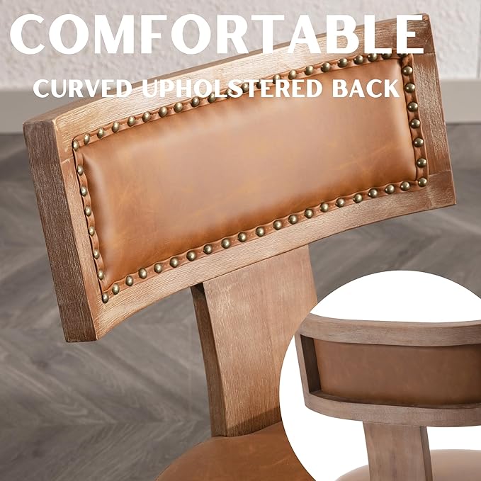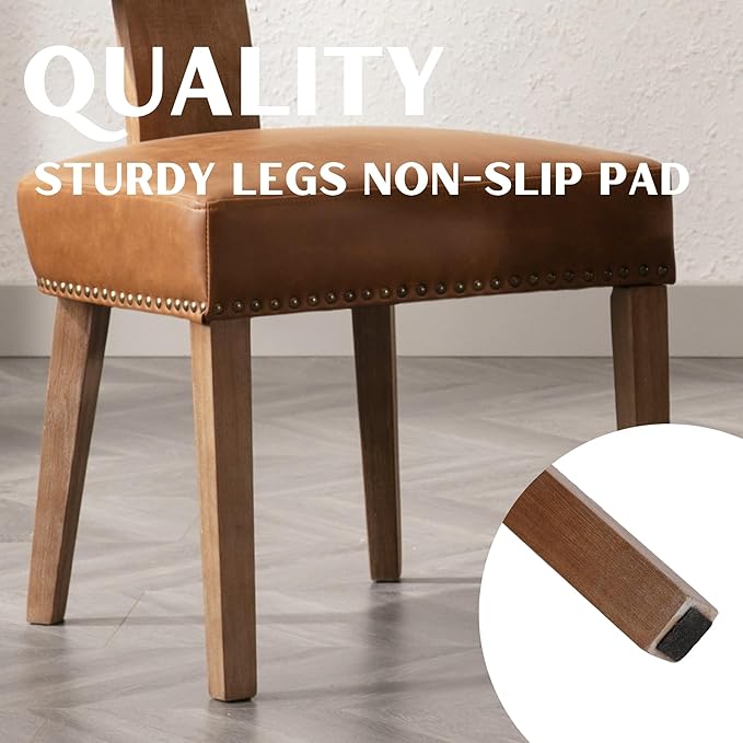 Mid Century Modern Dining Chairs Set of 6, Farmhouse Dining Chairs with Nailhead Trim, Faux Leather Upholstered Dining Room Chairs Kitchen Chairs with Wood Legs, Brown