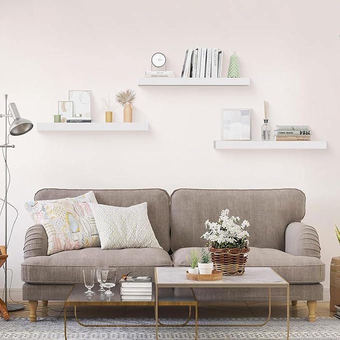 - Multi Functional Wall Shelves: Our floating wall shelves work perfectly for wall décor, books, trophies, photo frames, plants, photos, records, magazines, face, skin items and other prized possessions while offering functional storage with the wooden floating shelves. Enhance home decor, bathroom decor, living room decor will really easy to make a wall look decorative.