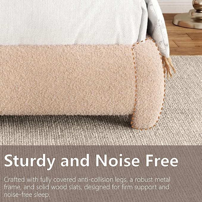- Stylish Comfort: Elevate your space with this upholstered queen bed, wrapped in soft boucle fabric for a cloud-like touch. The plush headboard adds both style and comfort, turning your bedroom into a warm, modern retreat