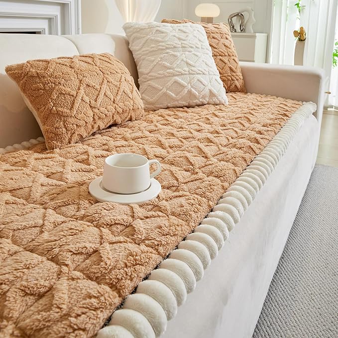 Couch Cover for Dogs Fuzzy Sofa Covers for Pet, Geometric Jacquard Coral Pet-Friendly Washable Non-Slip Sofas Slipcover Cushion Protector Pets Mat Dog Bed Mats