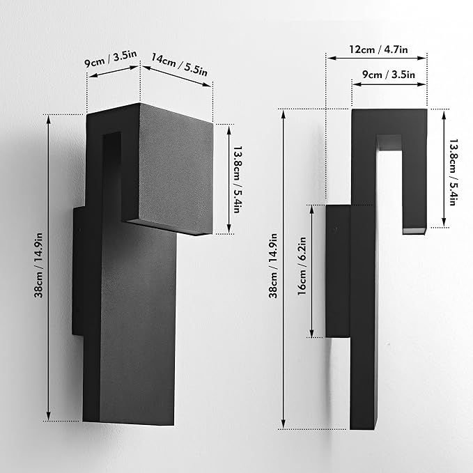 - 【Easy Installing】Black exterior light fixtures are hardwired for installation.Light Size: 5.5 x 15 x 4.7 inch. You need to drill holes and fix with screws for installing. The front wall light can be mounted vertical or horizontal to suit the indoor and outdoor decorations.