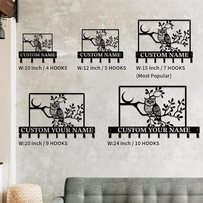 Personalized Custom Name Birds of Trees Wall Key Hooks,Metal Birds of Trees Art Clothes Hooks,Metal Birds of Trees Wall Home Storage Decorative,For Front Door, Hallway, Kitchen, Bedroom (Style I)