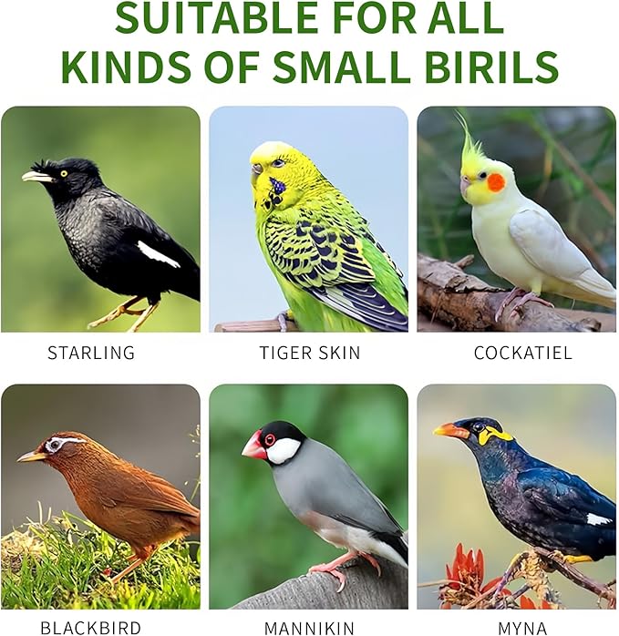 - This bird water dispenser features a 0.6-inch diameter opening, making it suitable for most small to medium-sized birds such as budgerigars, lovebirds, cockatiels, conures, sparrows, and mynas.