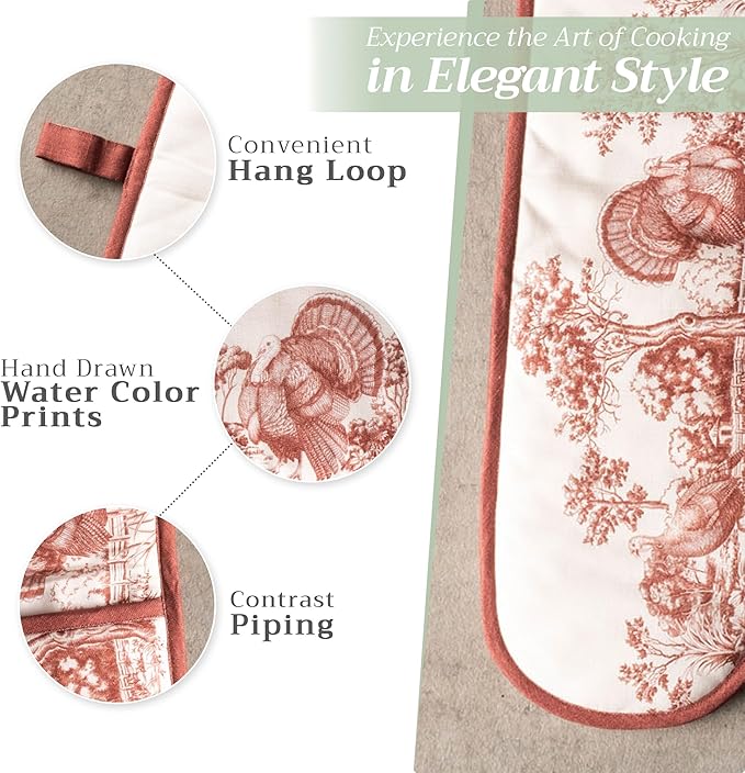 - Unique Design: Inspired by Europe, featuring exquisite watercolor artwork where each design embodies over 120 hours of hand-painted artistry. The rich hues and fine detailing make this Double Oven Mitt perfect for holiday tables, fall decor, Thanksgiving decorations, or festive Christmas decorations