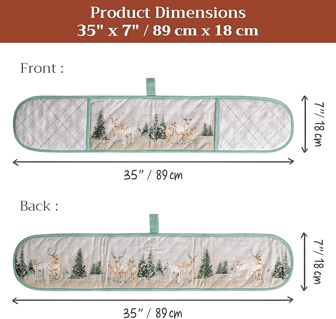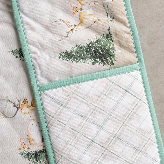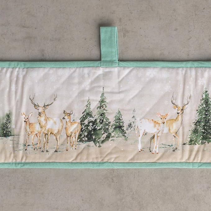 Maison d' Hermine Double Oven Mitt (7" x 35") 100% Cotton Heat Resistant BBQ Cooking Gloves with Loop for Thanksgiving Christmas Decorations Baking Cooking Handling Hot Pan (Deer in The Woods)
