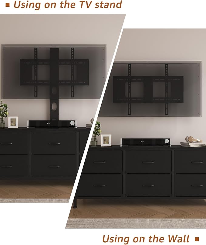 - Hassle-Free Assembly - We know your time is precious. That’s why our Dresser TV Stand with Mount comes with easy-to-follow instructions and all the necessary hardware for a quick and straightforward setup. You’ll have your TV stand ready to use in no time – no stress, no hassle!